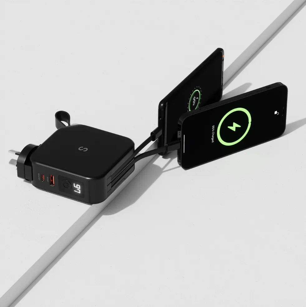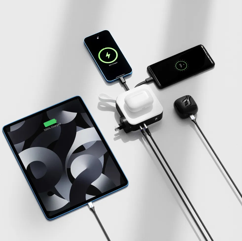 The PowerPack Universal has the ability to charge up to 5 devices at the one time when plugged into the power outlet. However, the maximum output is 22.5W, the more devices that are charging at the same time, the less power each individual device will receive.